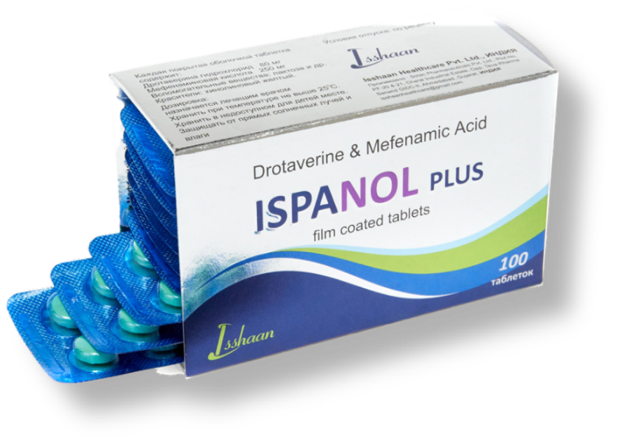 Комбинация спазмолитического (Дротаверин 80 мг) и противо-воспалительного (Мефенамовая кислота 250мг) препарата
